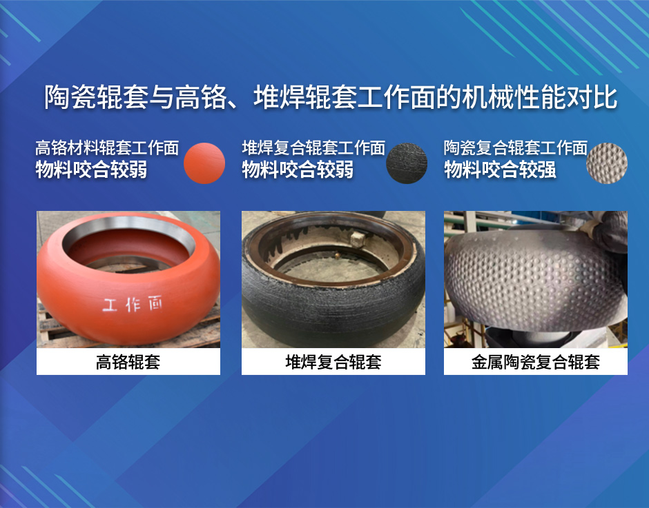 使用壽命是堆焊、高鉻材質(zhì)輥套的2.0-3.0倍